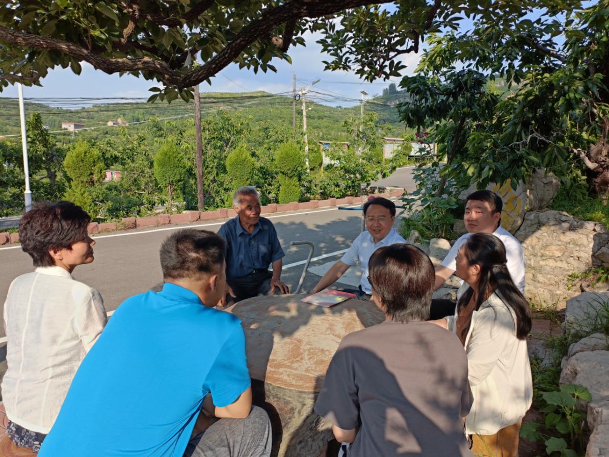 在燕崖镇双泉官庄村,党员干部通过实地走访亲身感受乡村振兴的丰硕成果,并与“愚公书记”刘宝吉坐在村办公室旁的柿子树下,听他讲解当年村干部和村民一起挥锨抡镐、平坡垒堰,将原来“山多石头多、出门就是坡”的贫困老村变成现在“园在山中、村在园中、人在绿中”的新农村示范村的故事。