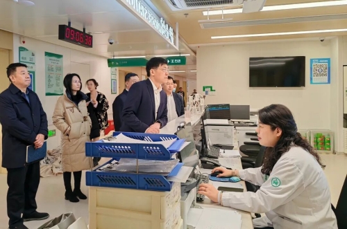 左毅一行分别到医院门诊诊室、住院病区、结算中心(窗口)、药房、自助服务区等实地察看,与就医群众、工作人员进行交流,深入了解医保码全流程应用、医保直接结算、智能监控系统运行、药品追溯码应用、医疗服务价格执行、集采中选结果落地、国家谈判药品配备、新生儿出生即参保、真实世界研究等情况,详细询问当前存在的问题和遇到的困难,听取大家对医保工作的意见建议,并现场解读政策、答疑解惑。 左毅指出,医疗机构是医保政策落地惠民的前沿窗口,是为群众提供医保服务的重要力量,希望各级医疗机构牢固树立“以人民为中心”的发展思想,认真落实医保支付方式、医疗服务价格、集中带量采购、联网结算报销等各项医保政策规定,积极参与影像云、病理云、个人医保云等建设,进一步强化医保智能监管事前提醒功能,全面推进药品追溯码扫码应用,切实规范诊疗行为,坚决扛牢依法依规使用医保基金主体责任,及时解决群众在就医结算过程中遇到的问题,努力为广大群众提供更加优质高效便捷的服务。